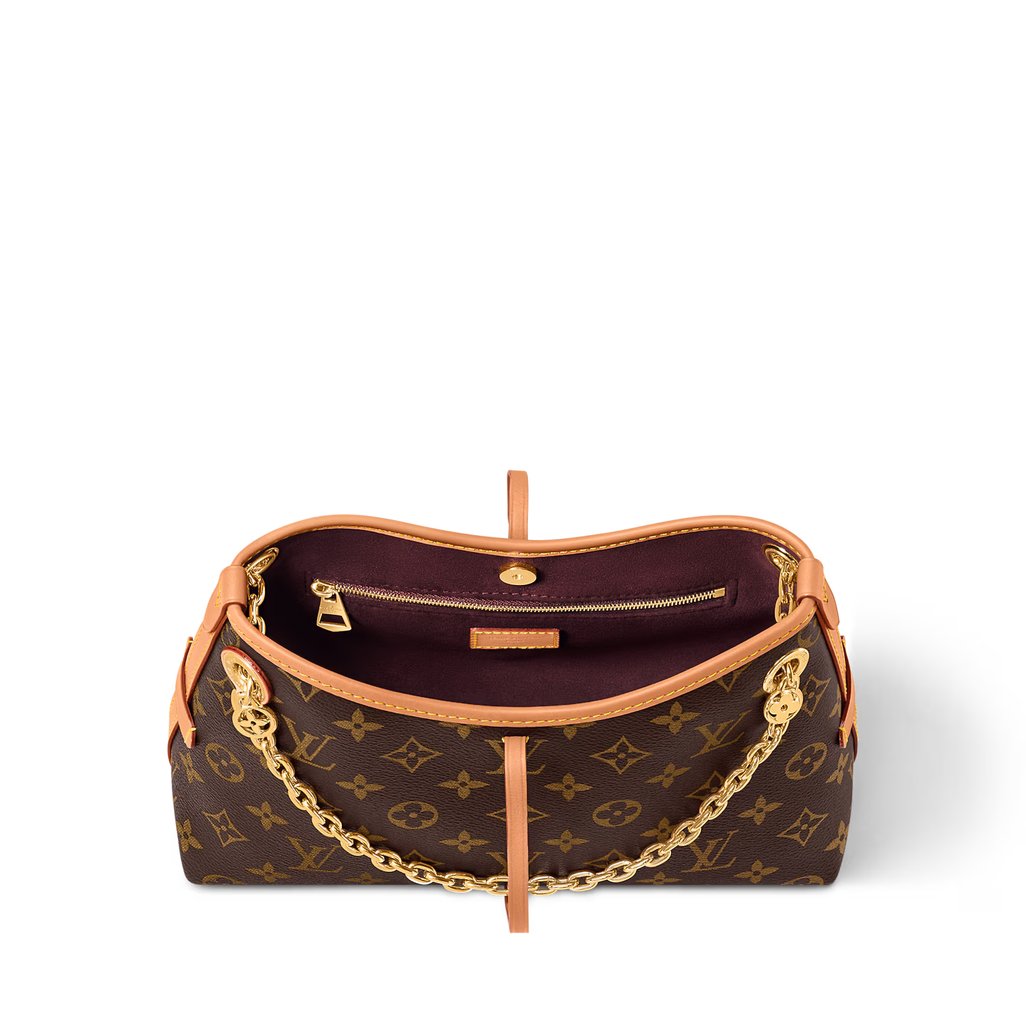 The iconic CarryAll BB is refreshed for the season in this chic day-to-evening edition. Crafted from the House’s Monogram canvas, it is embellished with a gold-toned chain adorned with Monogram Flowers. Signature details include a contrasting leather name tag, which beautifully matches the lace closure. Use the inside zipped pocket to keep an everyday credit card within easy reach.