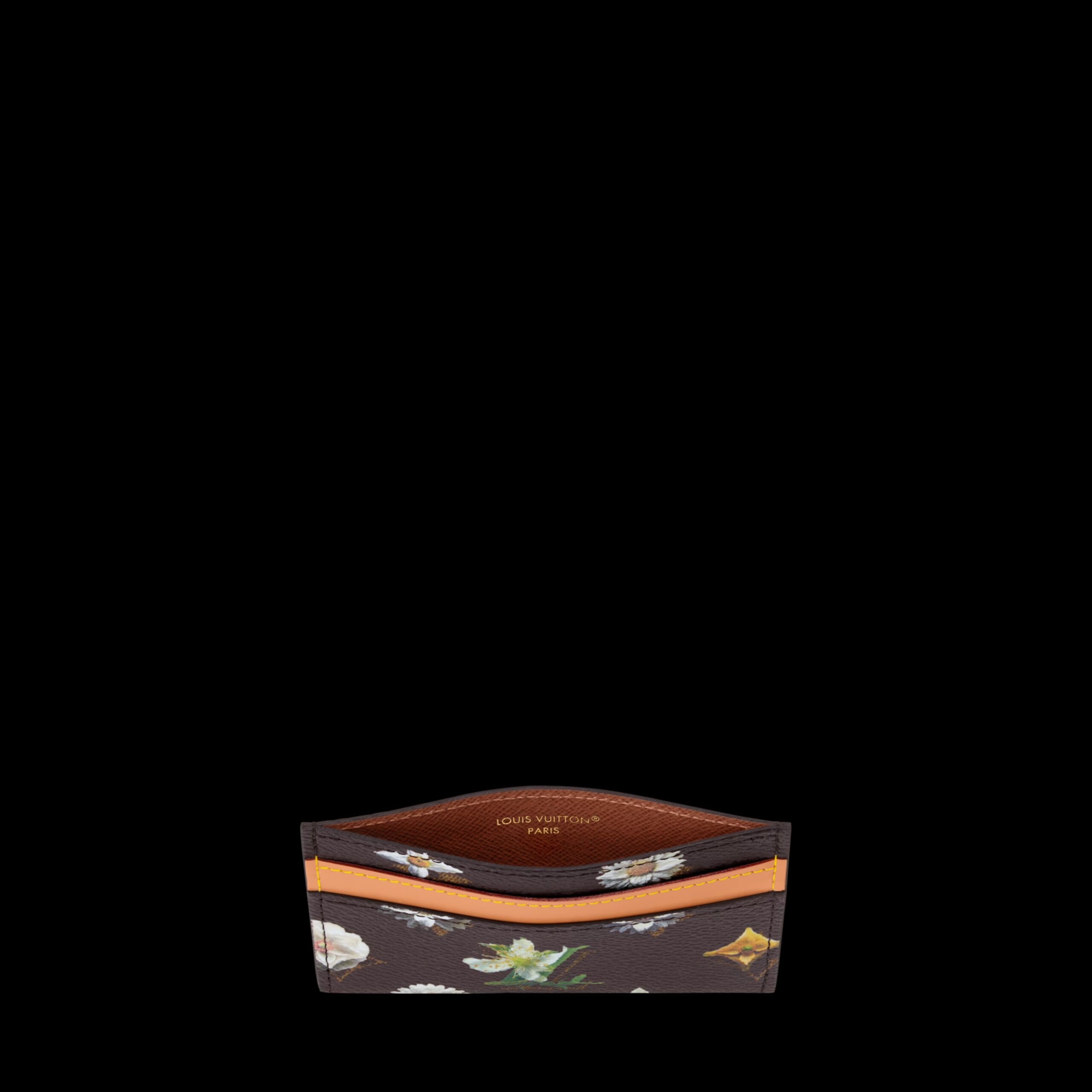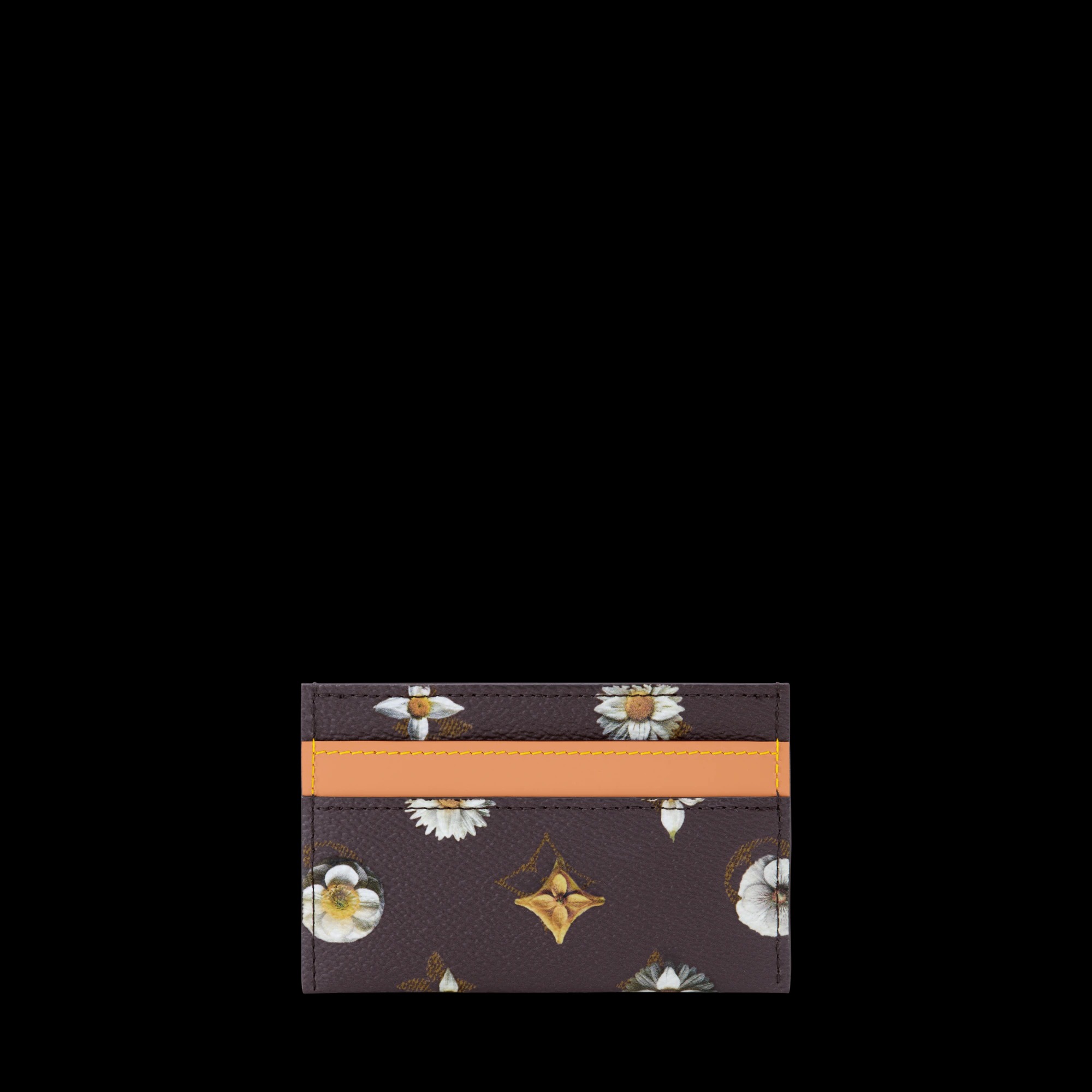 Blending delicate blooms with the timeless brown Monogram motif, Monogram Flowers coated canvas brings a fresh feel to the refined Double Card Holder. Inside, cowhide leather is accented with a golden hot-stamped watering can. Four card slots and a central pocket keep everyday essentials organized., BrownMonogram Flowers coated canvasCowhide-leather lining4 card slotsCentral pocketHot stamping insideThis reference is either Made in France, Spain, Italy or in the US.